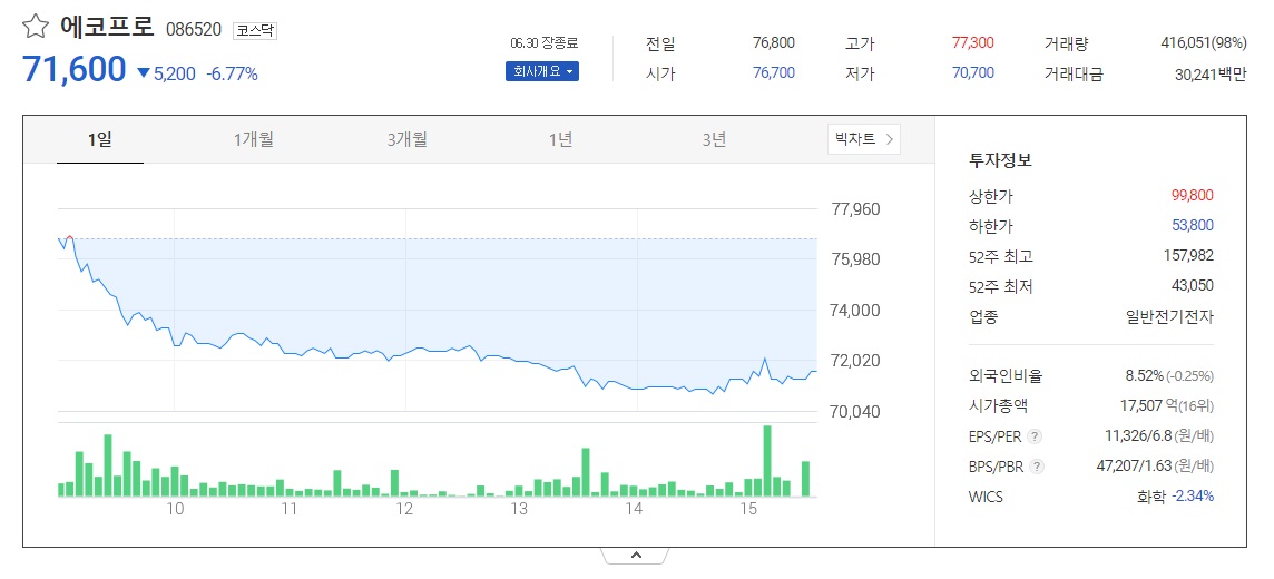 - *탄소제로 관련 종목 에코프로의 기업개요.