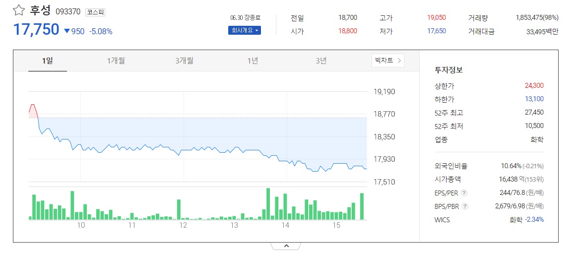- 탄소제로 관련 종목 후성의 기업개요.