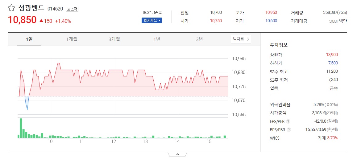 - 조선업 관련 종목 성광벤드의 기업개요.