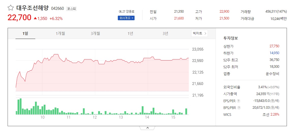 - 조선업 관련 종목 대우조선해양의 기업개요.