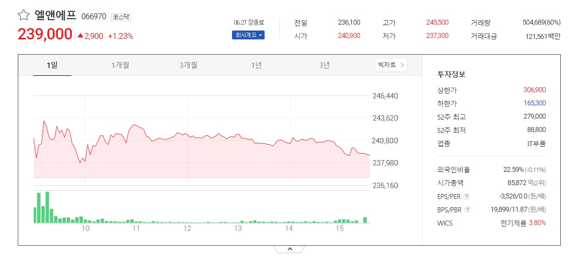 - 폐배터리 관련 종목 엘앤에프의 기업개요.