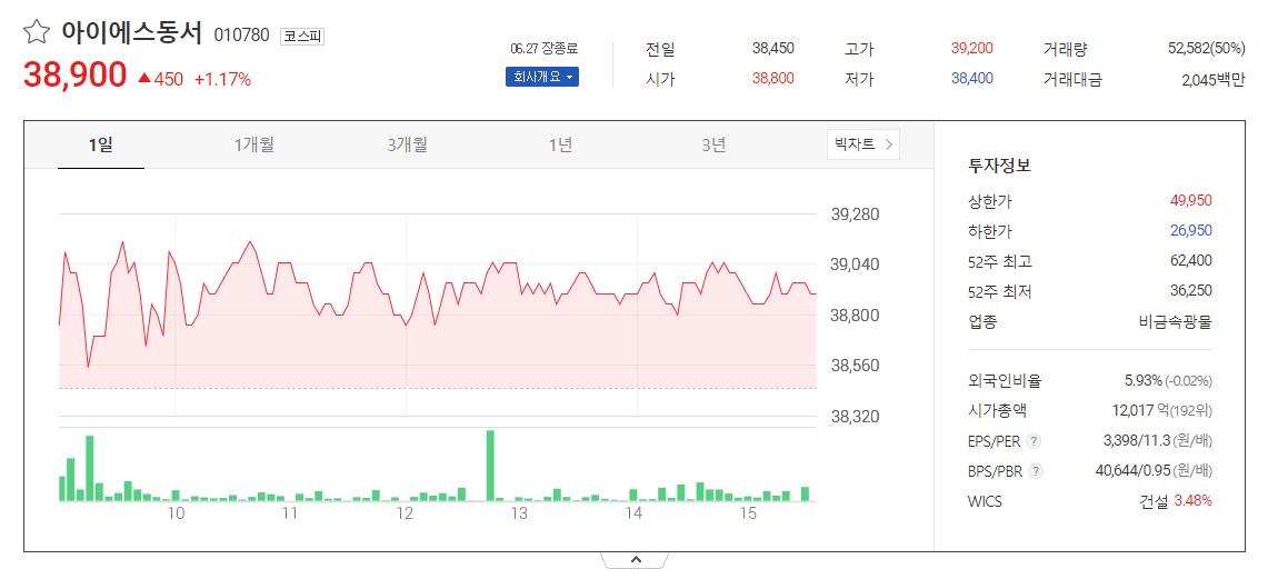 - 폐배터리 관련 종목 아이에스동서의 기업개요.
