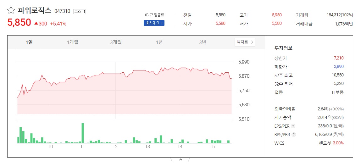 - 폐배터리 관련 종목 파워로직스의 기업개요.