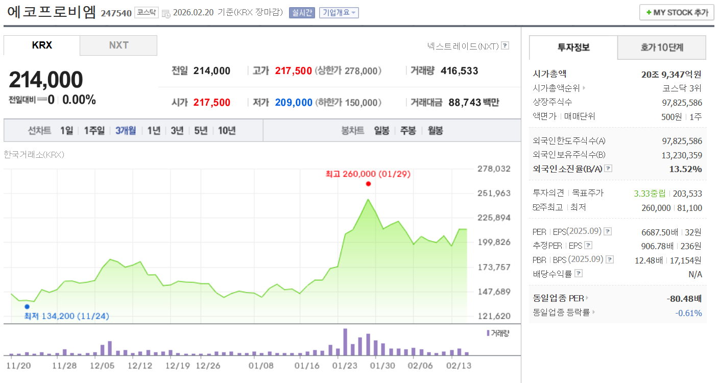 - 에코프로비엠: 하이니켈 양극재의 글로벌 경쟁력을 유지하는 가운데, 2026년은 중가형(LFP) 양극재 양산 준비와 고객사 다변화의 성과가 나타나는 시기입니다.