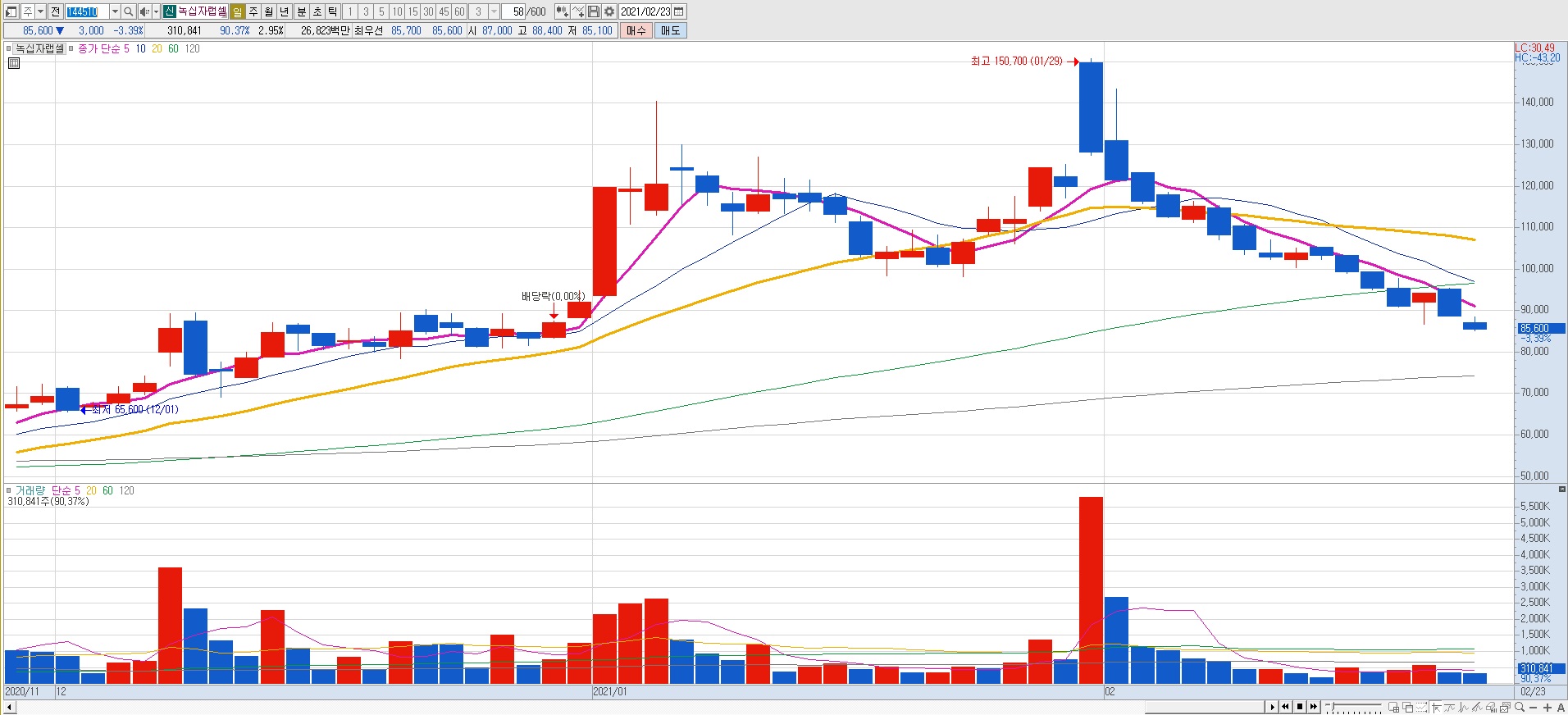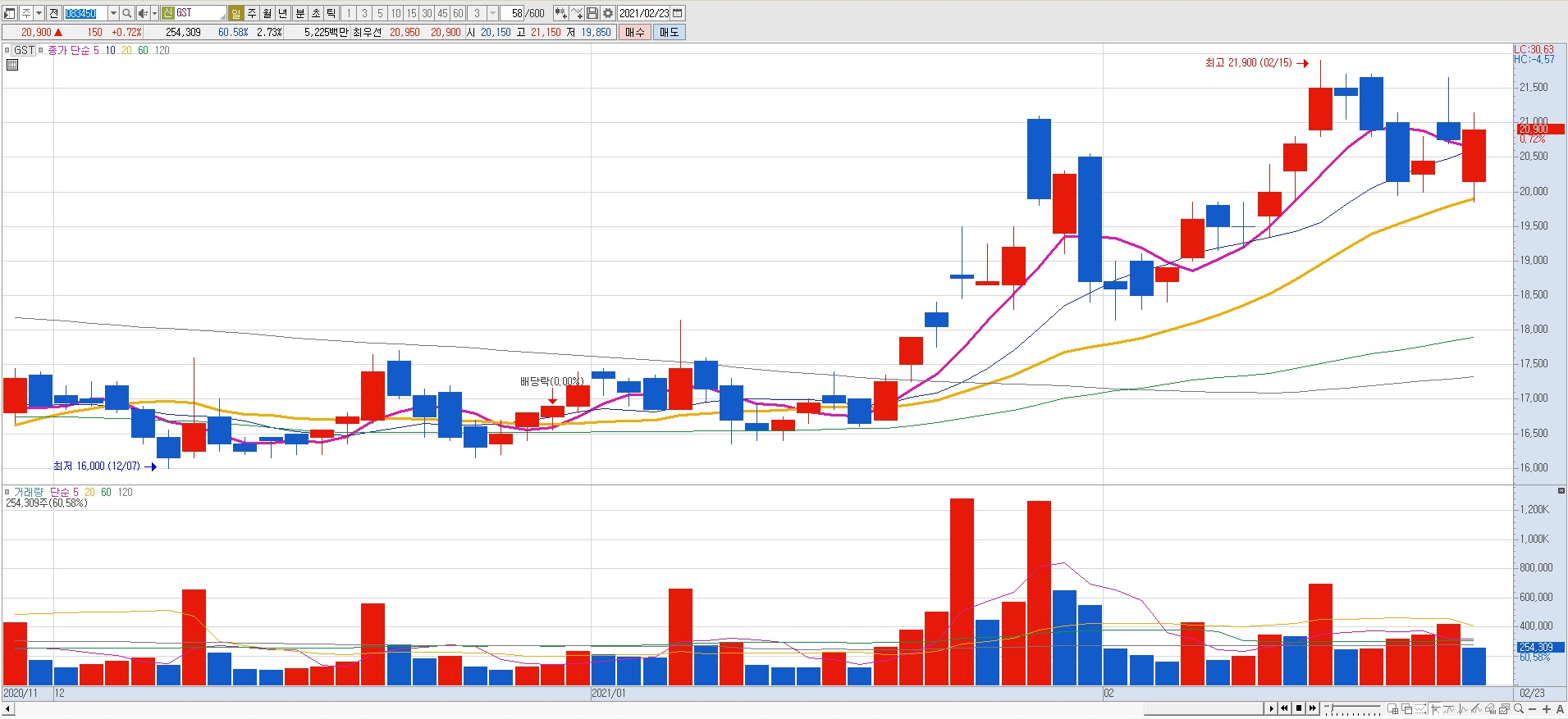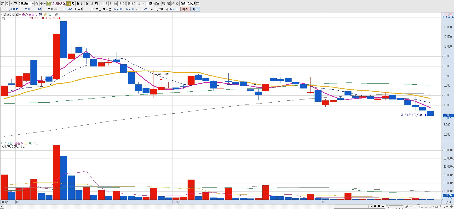 2021년 콜드체인 관련 종목 (저온 유통) 2월 23일 종목 시세 정리입니다.