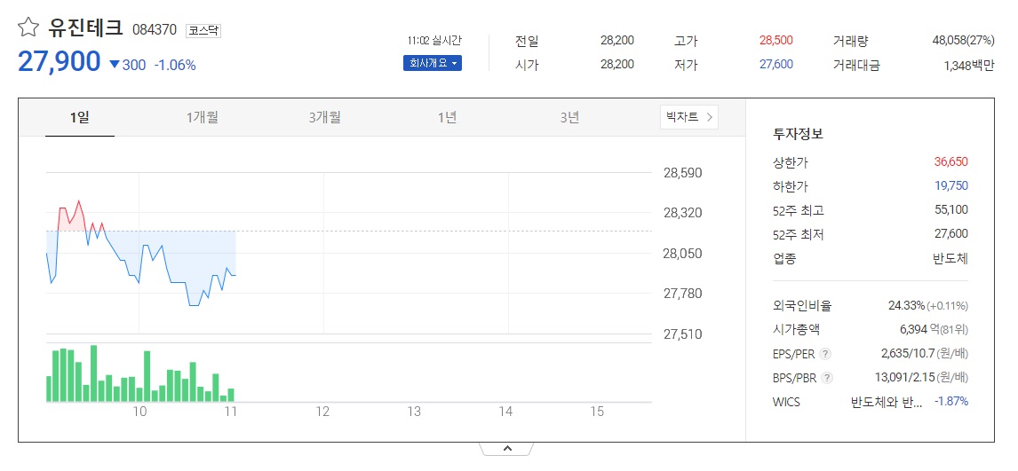 - 삼성전자 (협력사) 관련 종목 유진테크의 기업개요.
