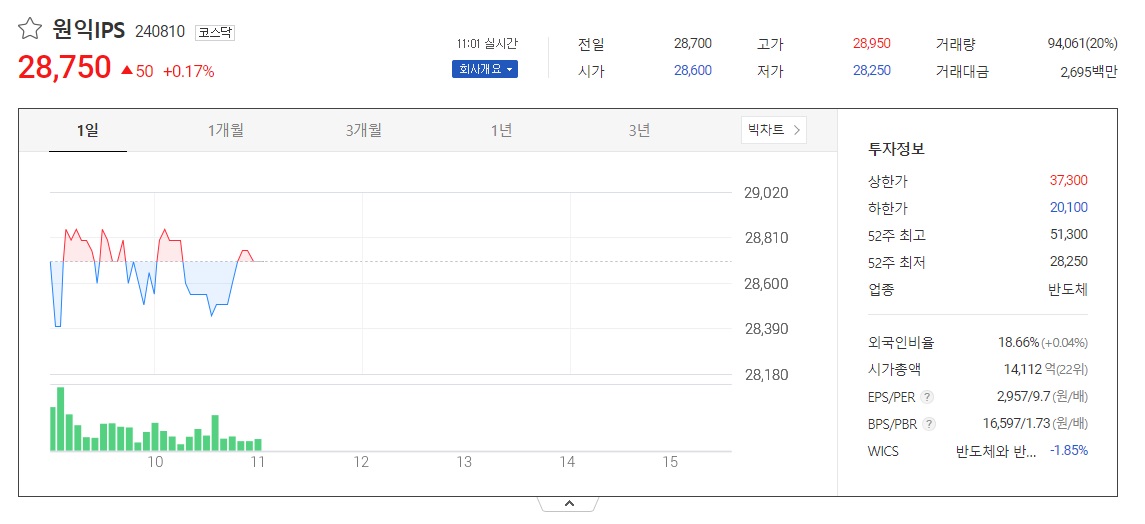 - 삼성전자 (협력사) 관련 종목 원익IPS의 기업개요.